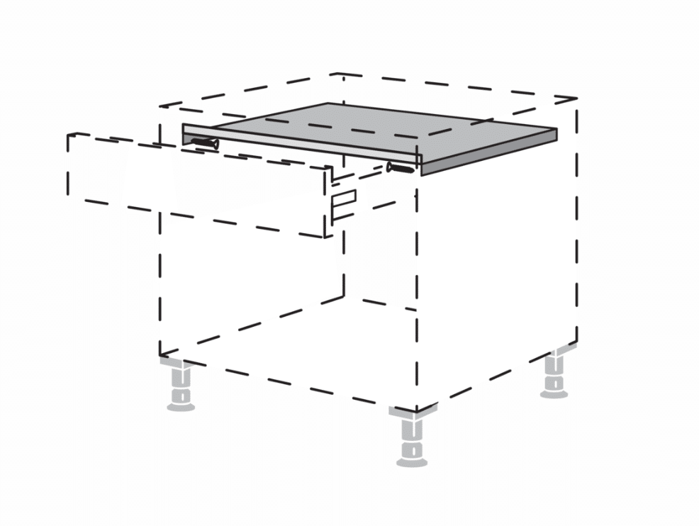 Kookplaatkast, 1 ladebak, 1 afstandplank, 2 uitrekelementen