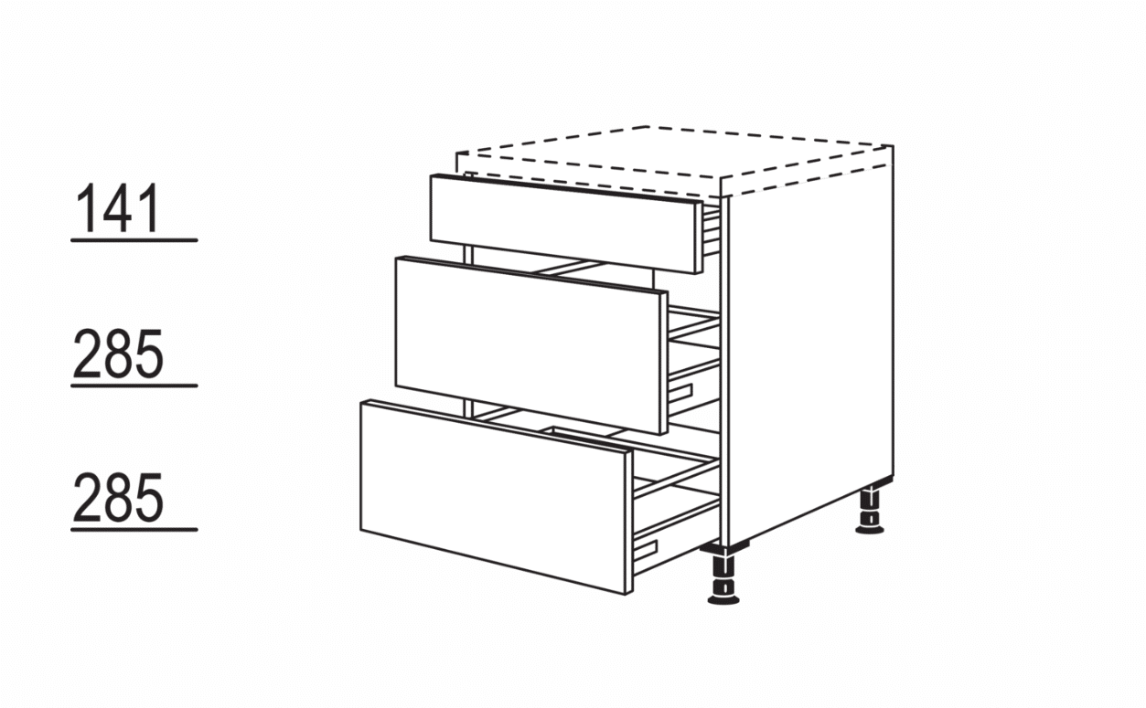 Onderkast, 1 lade bak, 2 uitrekelementen