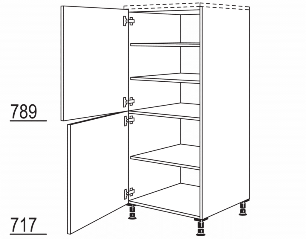 Ombouwkast koelkast, 1 binnenpaneel, 2 apparaatdeuren, Nishoogte: 1450 mm