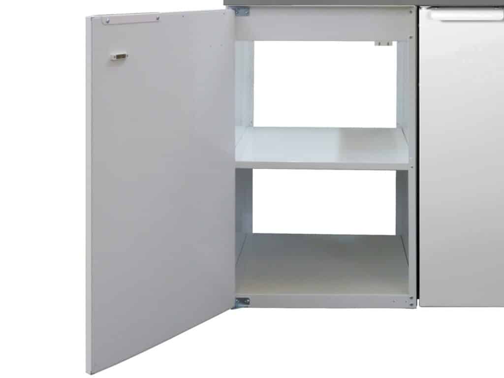 Legplank voor de Steel-lijn onderkasten, inclusief montagemateriaal. Er is 1 legplank per onderkast mogelijk en zijn alleen verkrijgbaar in de kleur wit. Deze legplanken zijn gemaakt van wit gepoedercoat metaal en komen in 4 afmetingen.