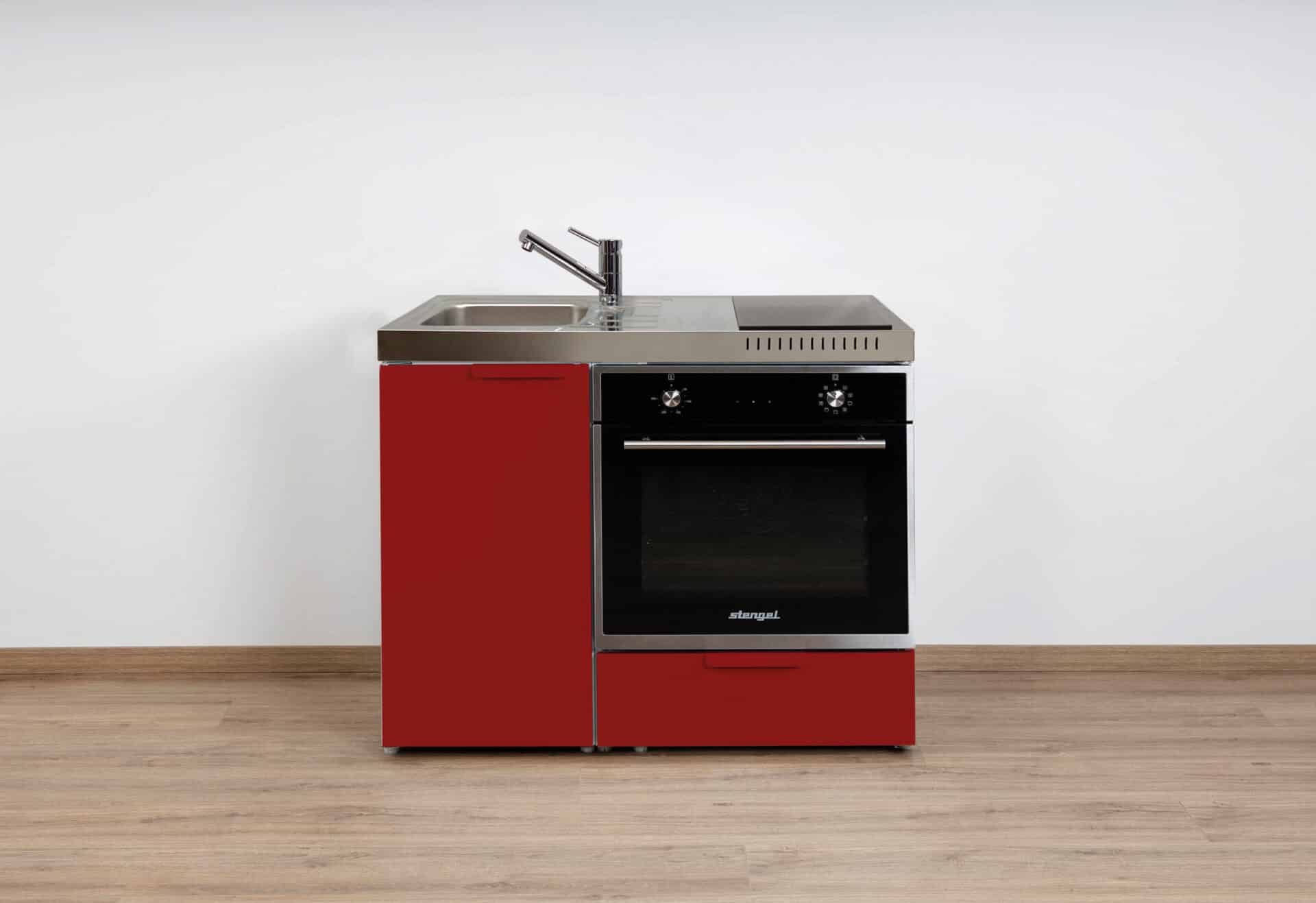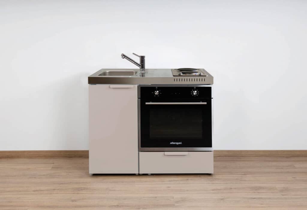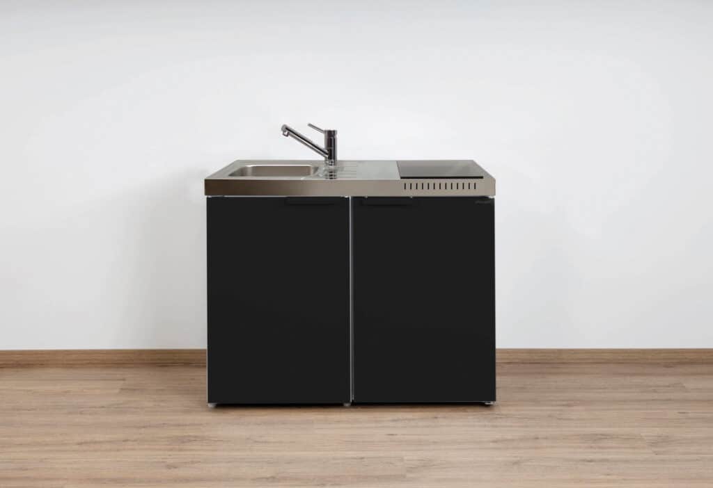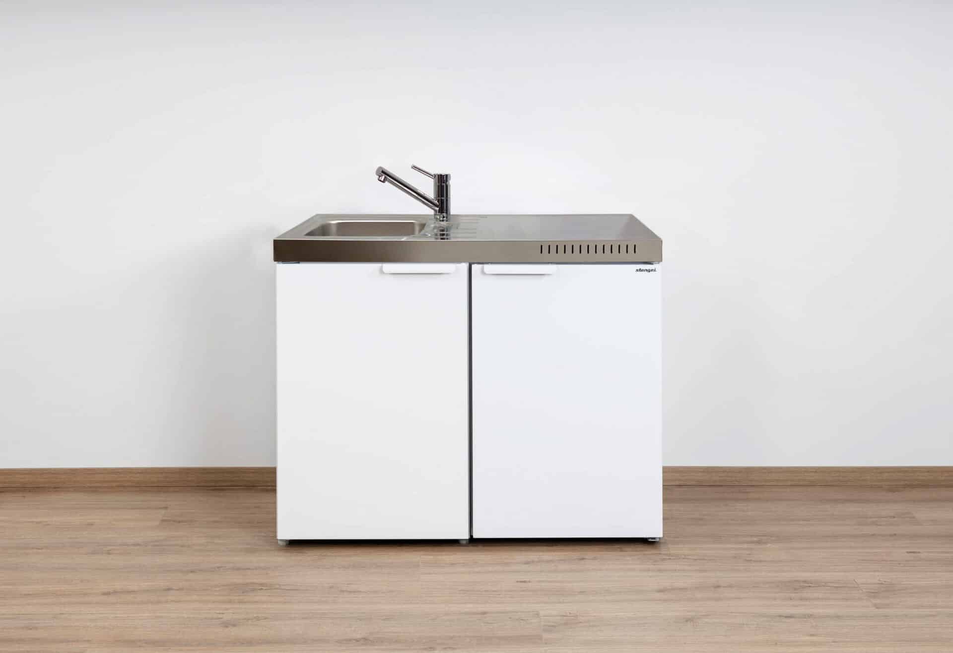 Onze metalen minikeukens bestaan volledig uit metaal en worden kant en klaar (gemonteerd en stekkerklaar) geleverd op een pallet. De K-lijn keukens zijn standaard voorzien van een rvs gepolijst werkblad met een geïntegreerde spoelbak inclusief afdruipgedeelte. Zelfs de fronten zijn uitgevoerd in gepoedercoat metaal met handgrepen in kleur van het front.