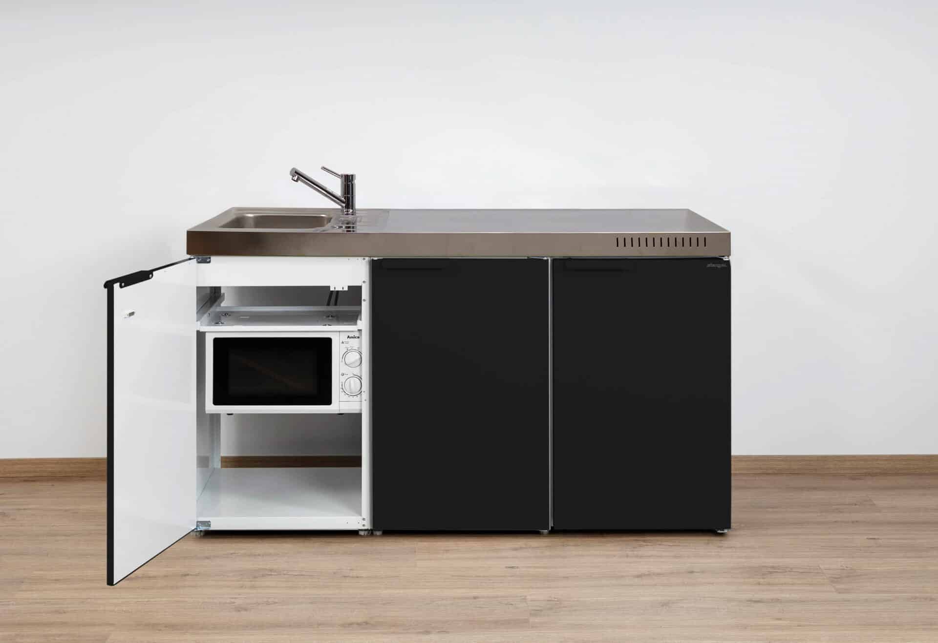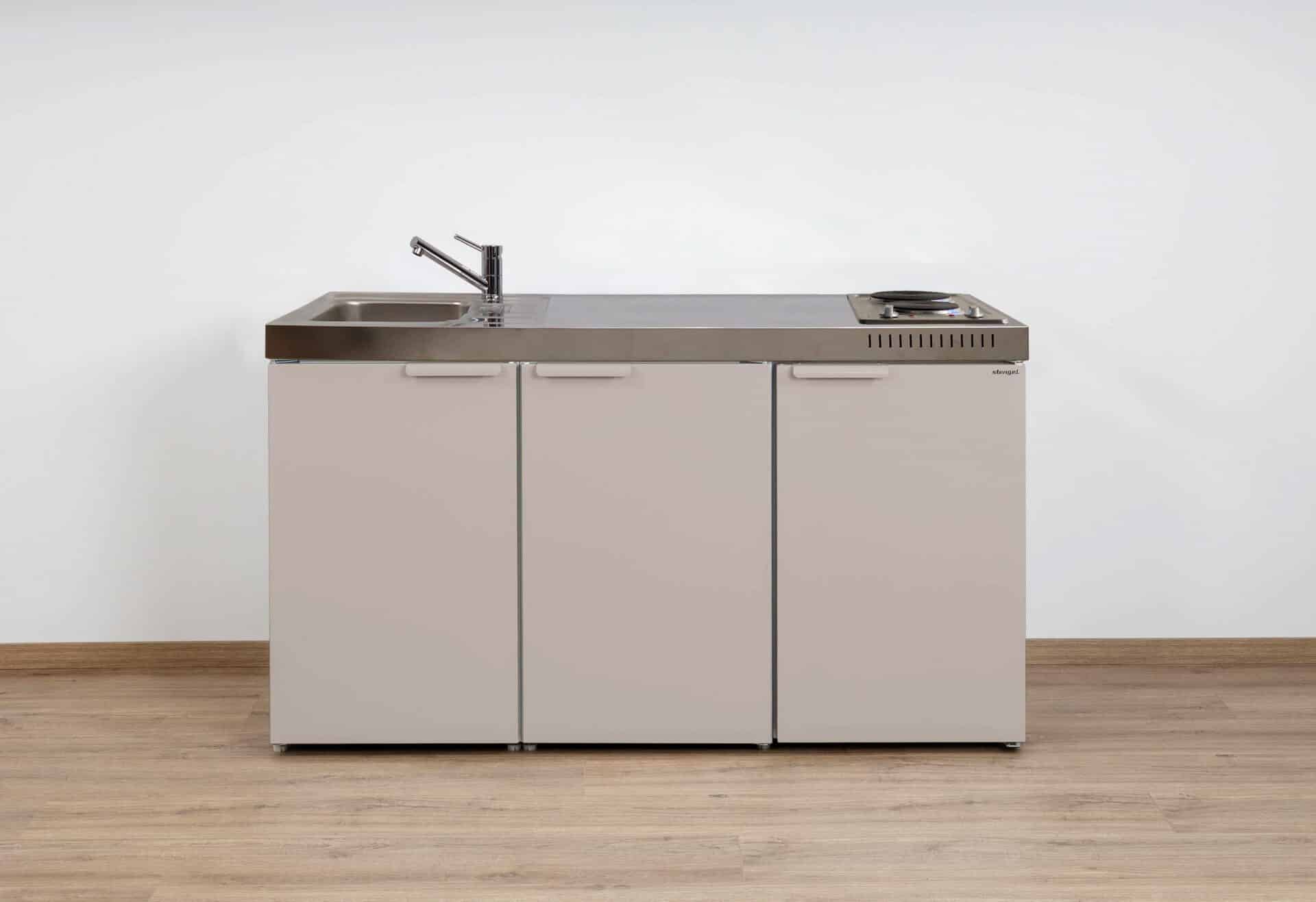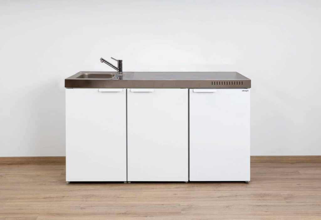 Onze metalen minikeukens bestaan volledig uit metaal en worden kant en klaar (gemonteerd en stekkerklaar) geleverd op een pallet. De K-lijn keukens zijn standaard voorzien van een rvs gepolijst werkblad met een geïntegreerde spoelbak inclusief afdruipgedeelte. Zelfs de fronten zijn uitgevoerd in gepoedercoat metaal met handgrepen in kleur van het front.