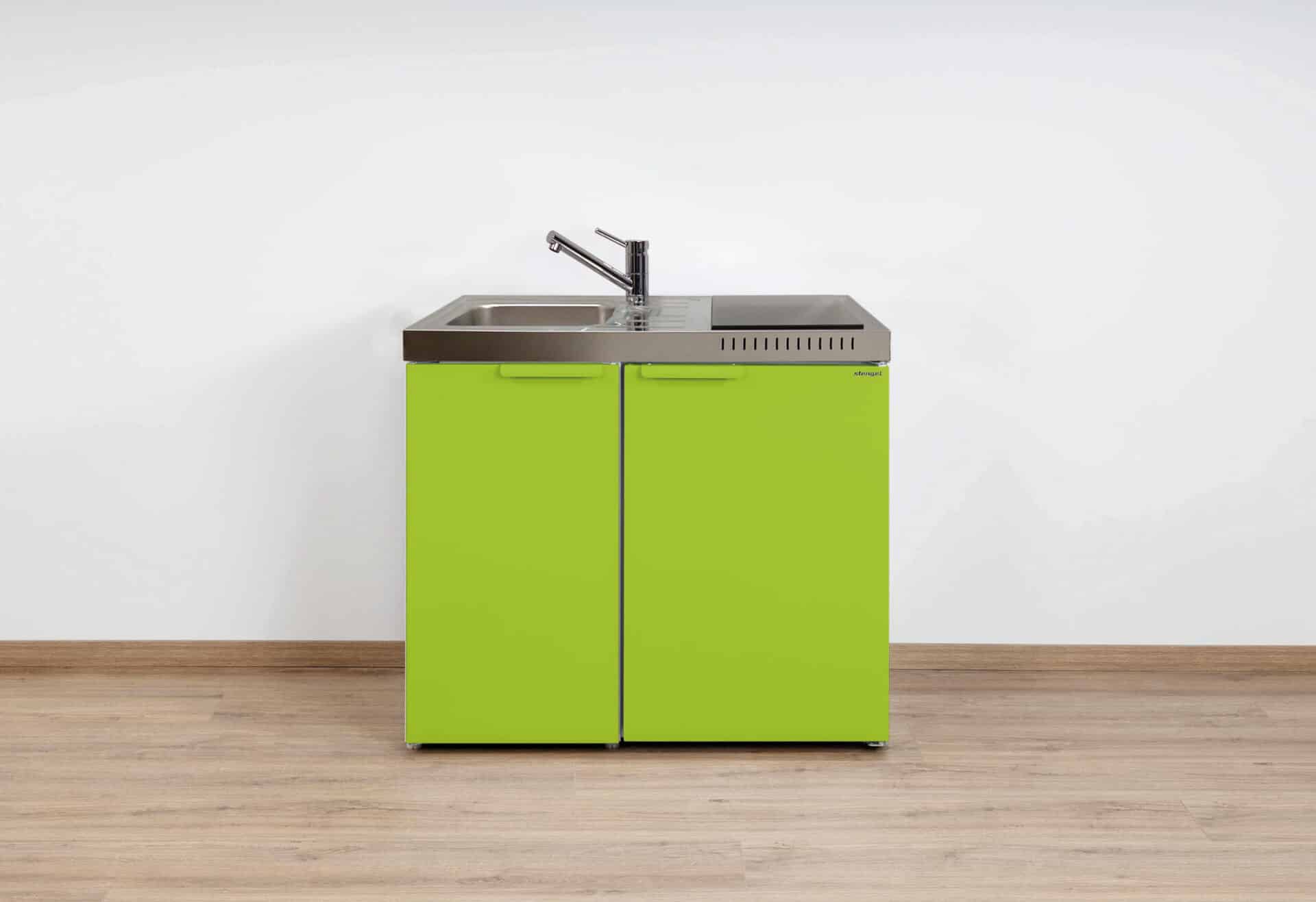 Onze metalen minikeukens bestaan volledig uit metaal en worden kant en klaar (gemonteerd en stekkerklaar) geleverd op een pallet. De K-lijn keukens zijn standaard voorzien van een rvs gepolijst werkblad met een geïntegreerde spoelbak inclusief afdruipgedeelte. Zelfs de fronten zijn uitgevoerd in gepoedercoat metaal met handgrepen in kleur van het front.