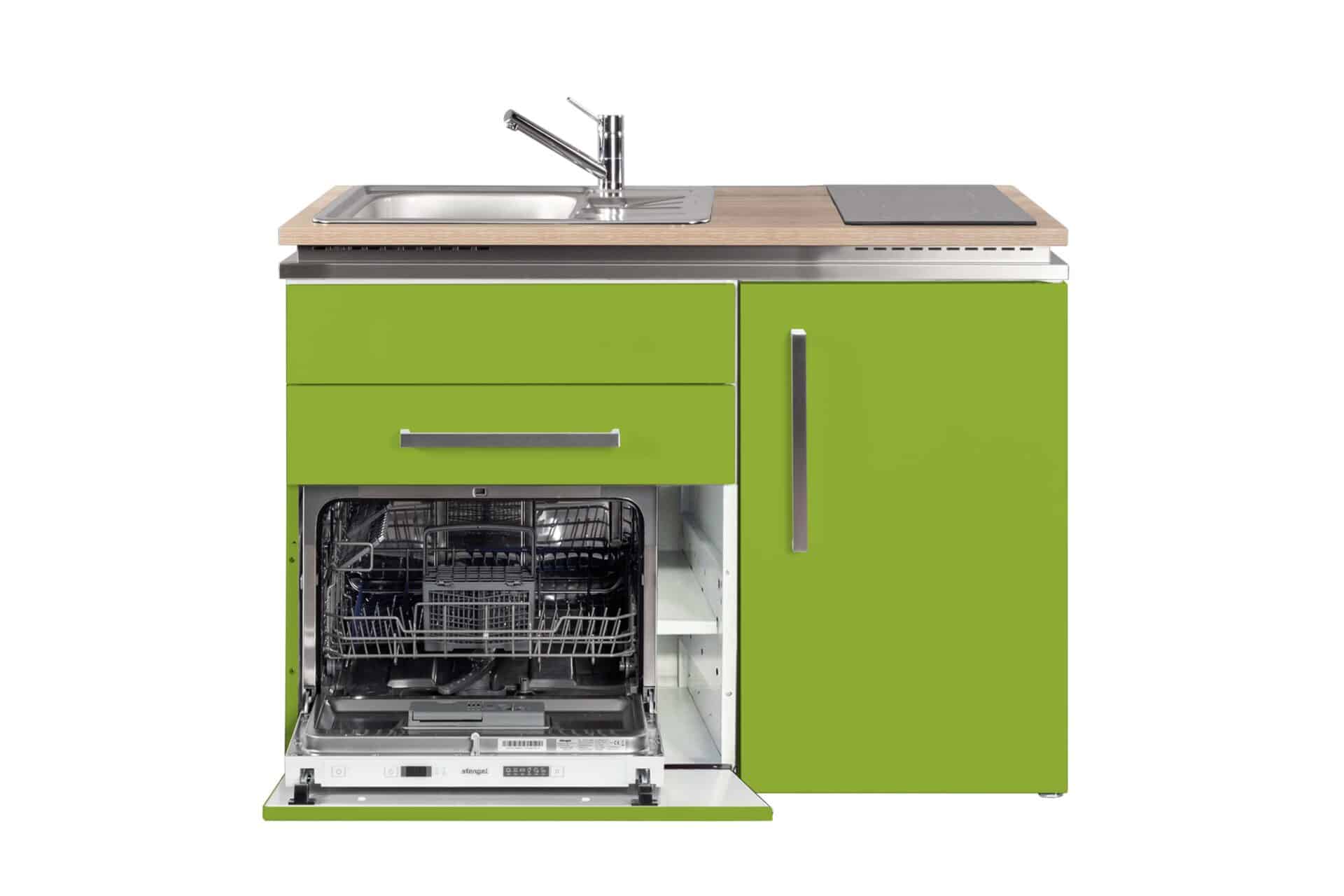 Onze metalen minikeukens bestaan voornamelijk uit metaal en worden kant en klaar (gemonteerd en stekkerklaar) geleverd op een pallet. De keukens zijn standaard voorzien van een HPL werkblad met een opbouwspoelbak inclusief afdruipgedeelte. Zelfs de fronten zijn uitgevoerd in gepoedercoat metaal met rvs geborstelde handgrepen.
