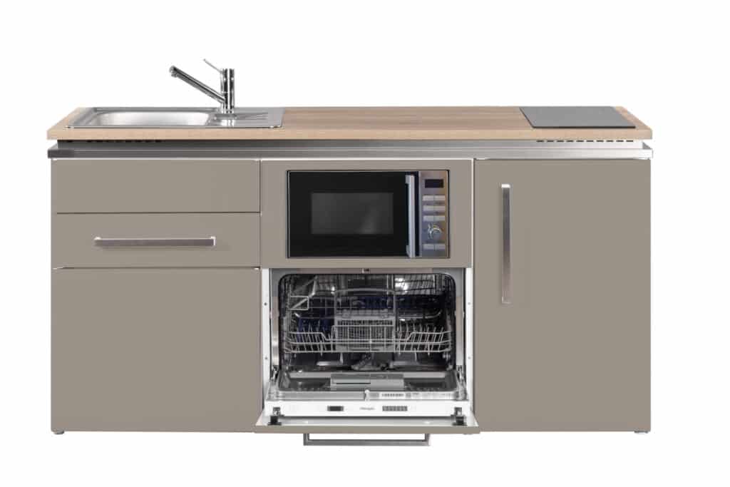 Onze metalen minikeukens bestaan voornamelijk uit metaal en worden kant en klaar (gemonteerd en stekkerklaar) geleverd op een pallet. De keukens zijn standaard voorzien van een HPL werkblad met een opbouwspoelbak inclusief afdruipgedeelte. Zelfs de fronten zijn uitgevoerd in gepoedercoat metaal met rvs geborstelde handgrepen.