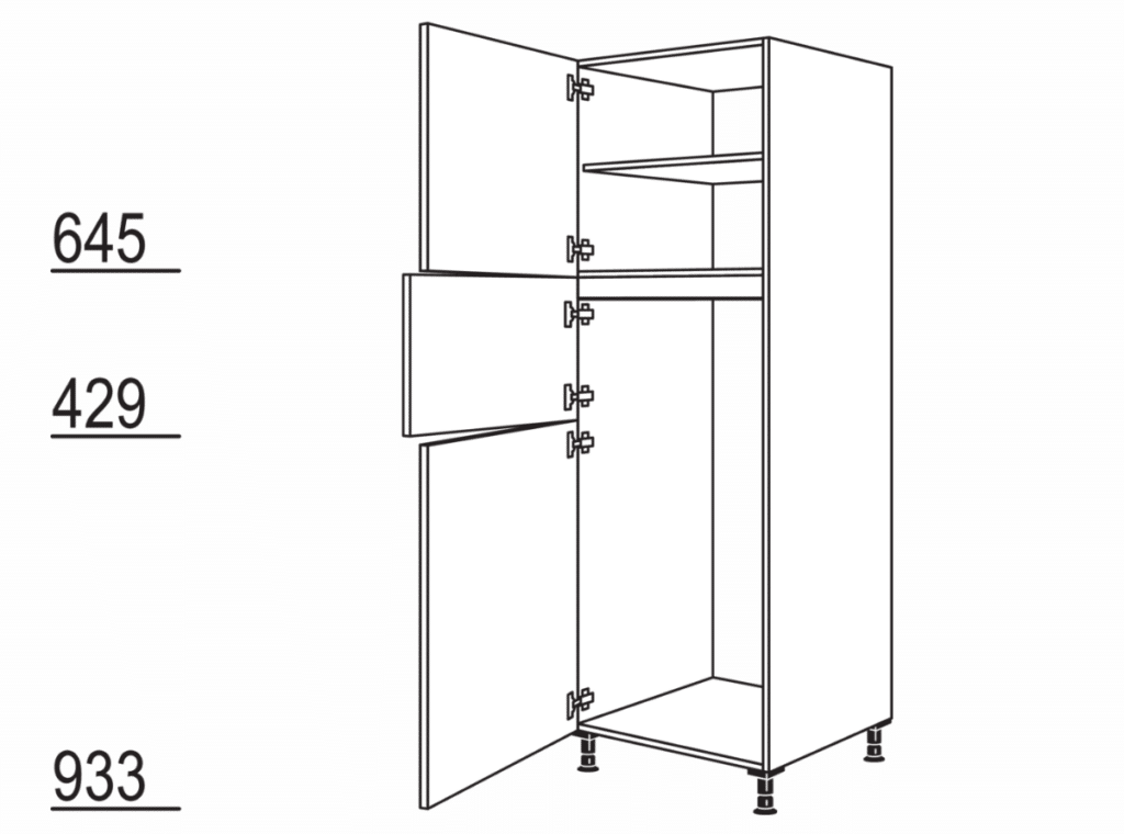 Ombouwkast oven, 2 deuren, 1 vast paneel, 2 legplanken, Nishoogte: 590 mm