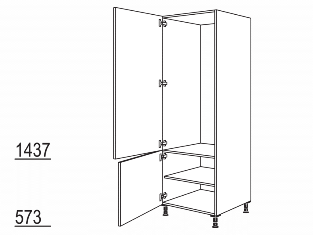 Ombouwkast oven, 2 deuren, 1 vast paneel, 2 legplanken, Nishoogte: 590 mm