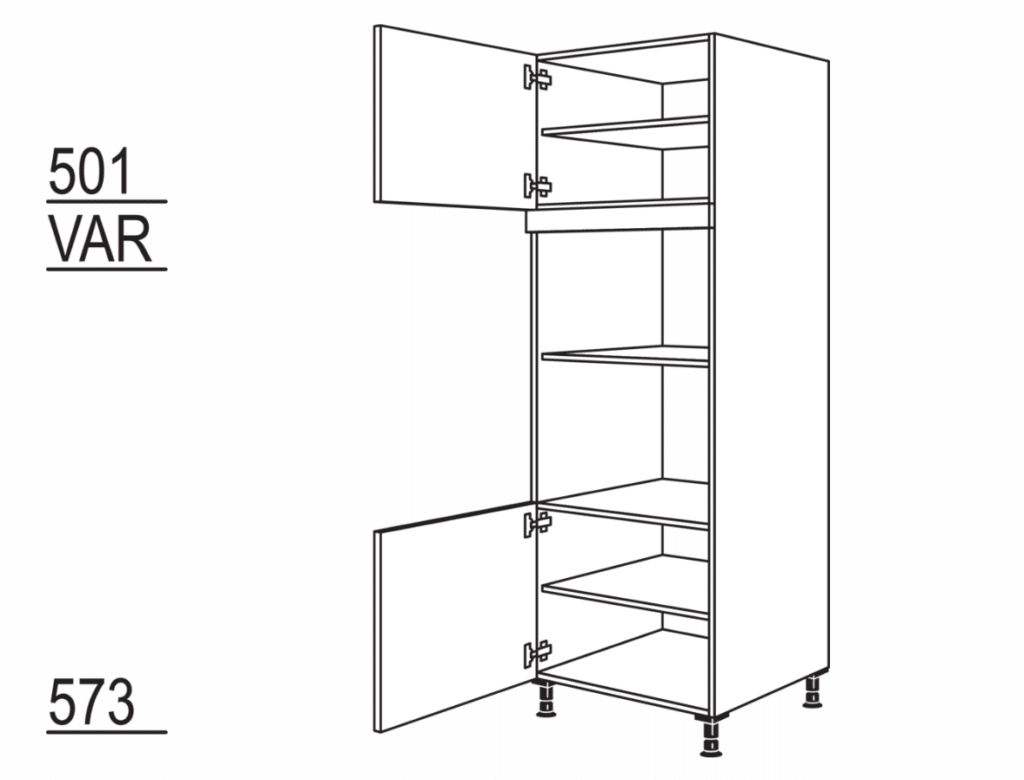 Ombouwkast oven, 2 deuren, 1 vast paneel, 2 legplanken, Nishoogte: 590 mm